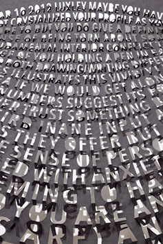 New text-based works quoting unanswered messages I sent on internet dating sites. These failed efforts to spark a connection are hand cut into various sheet materials, with the letters left dangling.