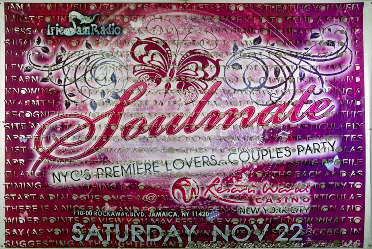 Overlaying dating site messages onto banners merges two forms of advertising, two carefully crafted projections intent on moving an audience to action. Both undergo a functional shift in the process: the once private messages are writ large and hung for all to see, reveling/wallowing in a peculiar contemporary phenomenon and its inevitable failures. The banners, having served their initial purpose, remain artifacts of the city’s vibrant cultural landscape but are transformed into something reflecting the multi-layered, everything-at-once nature of that landscape, it’s private layers and public proclamations merged into a singular cacophonous display.