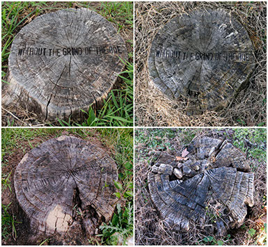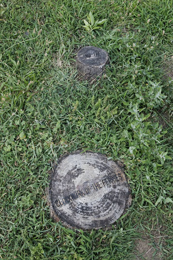7 fire-branded tree stumps at Fort Jay, Governors Island, NY, 2011