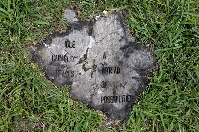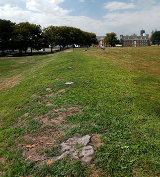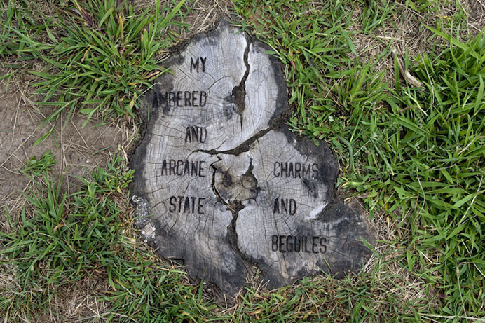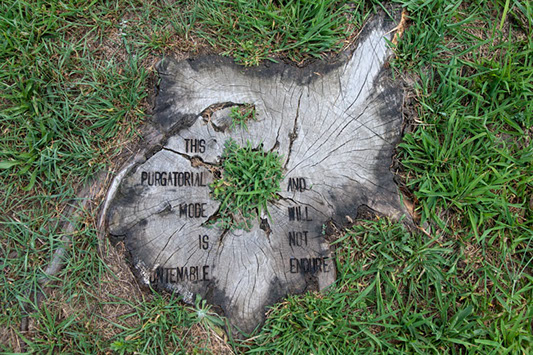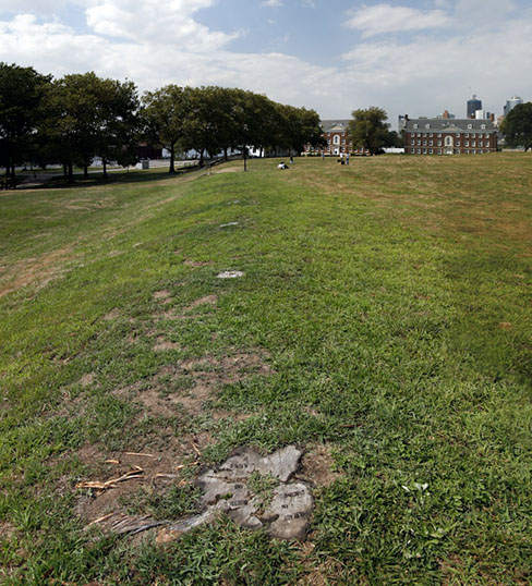 9 fire-branded tree stumps at Fort Jay, Governors Island, NY
