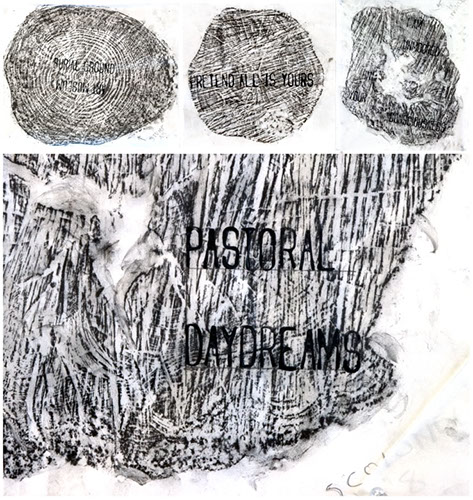 The final image are rubbings from the stumps used to create preparatory layouts.