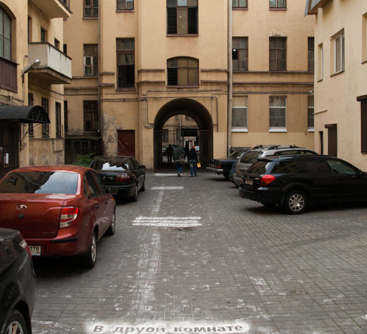 These interconnected courtyards and alleyways of St Petersburg are hidden spaces serving multiple social functions. Parking lot, green-space, playground, and setting for random encounters with one's neighbor