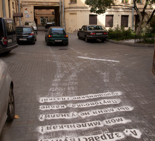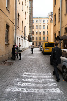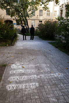 30 white chalk texts in the courtyards and alleys of Saint Petersburg, 2012