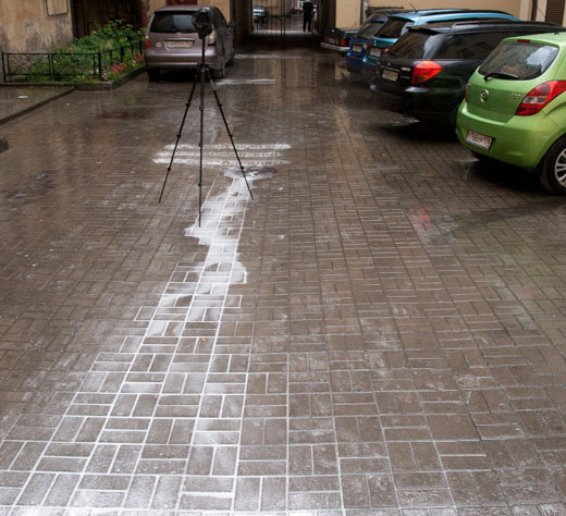 Foot traffic and passing cars spread and smear the chalk, gradually wearing away each drawing until it became a series of purely visual forms.
